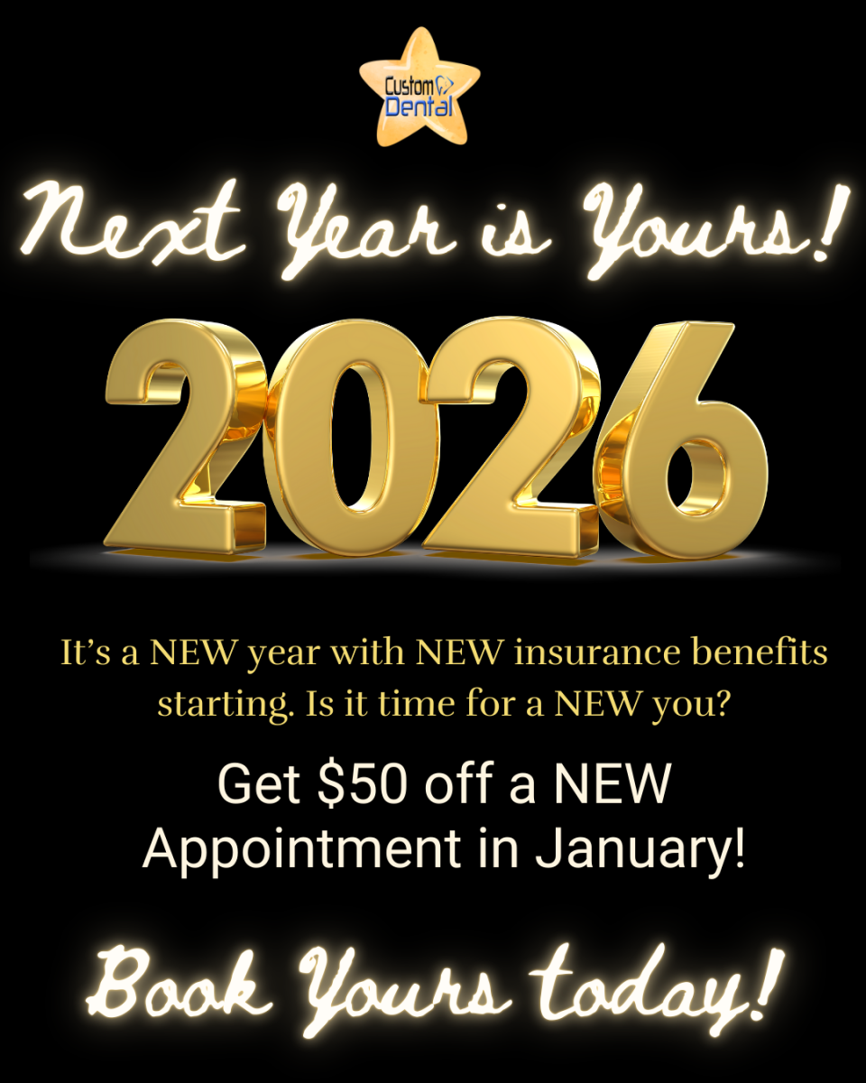 It's a NEW year with NEW dental insurance benefits starting over. Is it time for a NEW you? Make 2026 your year with $50 in-office credit to use towards any out-of-pocket expense on a NEW dentist appointment booked by Jan. 31.